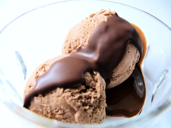 Sekoita ainekset sauvasekoittimella kunnes seos on täysin tasaista ja kiiltävää. Valmista jäätelökoneella tai laita pakastimeen (glukoosisiirapin määrä silloin 1 dl) vähintään 5 tunniksi.