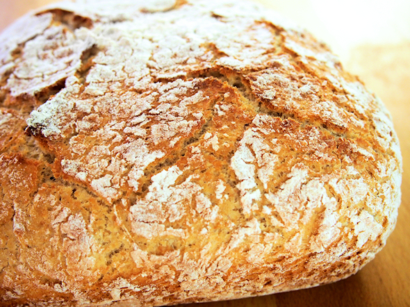 Kyseessä on variaatio vaivaton vehnäleipä padassa ohjeesta.