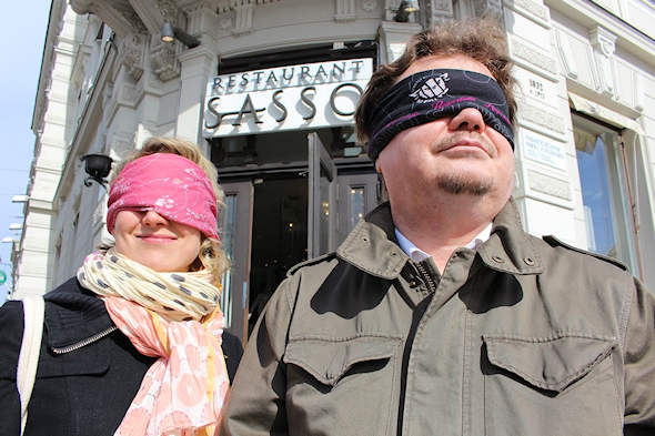 Seisoin aurinkoisena Huhtikuun päivänä hiukan jännittyneenä Aleksanterin patsaan juurella ja paikalle saapui sovittuna ajankohtana järjestäjän edustaja Eero Tiainen ja toinen kokeilemaan tullut bloggari, kulttuurikuuri blogin Meri Liukkonen. Eero johdatteli meidät nuppu kivisiä katuja ja kujia pitkin lopulta iloiseksi yllätykseksi Sassoon.