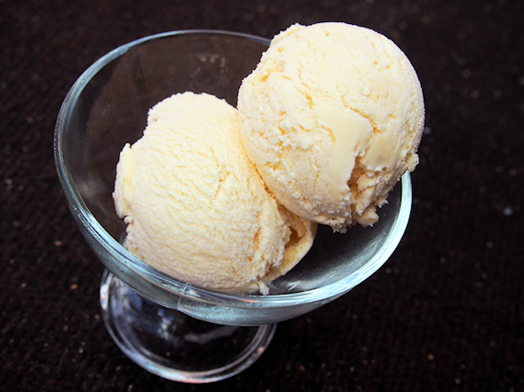Jos ei halua, tai voi käyttää glukoosisiirappia, seos laitetaan pakkaseen ja alussa sitä sekoitetaan vähintään puolen tunnin välein, kunnes seos alkaa olla niin paksua, että sitä on vaikea sekoittaa. Lopputulos on koostumukseltaan helposti hiukan hilemäistä, mutta maku on hyvä. Valmistamiseen menee tässäkin tapauksessa vähintään se 5 tuntia. (Pakastimen lämpötila -20 astetta).