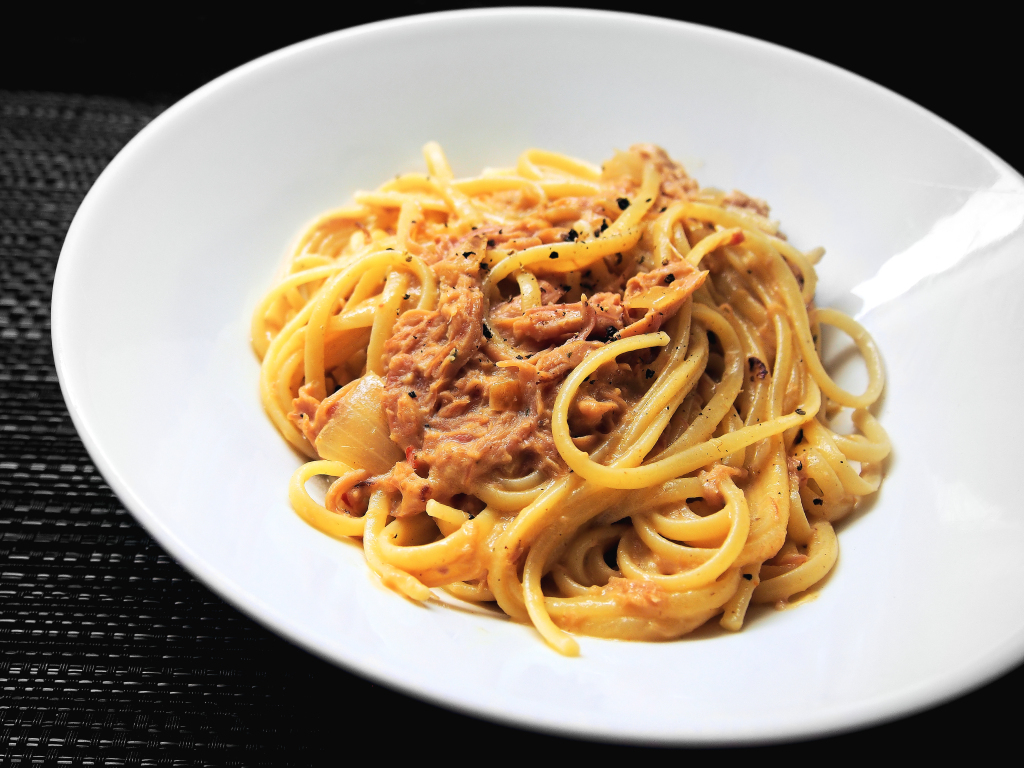 Kaada kypsä pasta joukkoon ja anna vetäytyä hetken. Sirottele tarjotessa pinnalle ripaus mustapippuria.