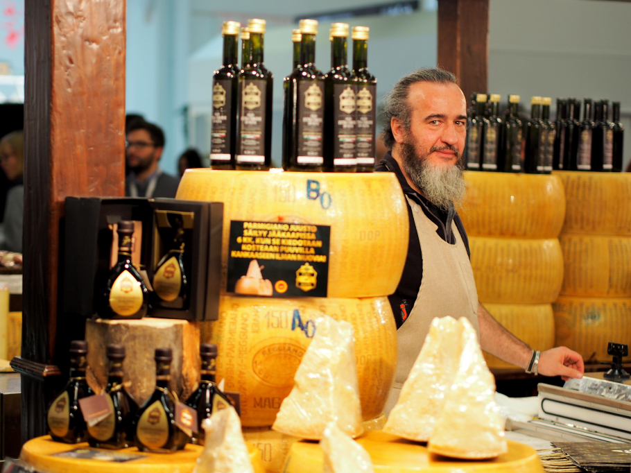 Tänä vuona koko alue oli anniskelualuetta ja tilaa oli enemmän. Ratkaisu oli onnistunut, sillä kaikki ruokien kanssa pystyi näin nauttimaa viiniä. Vaikka viinilasin ja ruoka/juoma lipukkeiden ostopaikkoja oli kahdessa salissa (ja lisäksi pari vain lipukkeita myyvä piste) niin järjestäjät eivät ehkä olleet varautuneet suosioon, sillä jonot venyivät välillä aika pitkäksi, mutta jonotus sujui hyvin 🙂