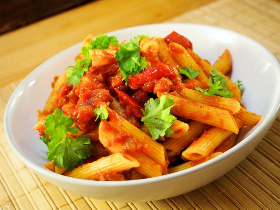 Paprikapasta on lohdullinen ja täyteläinen pasta. Meidän versio sisältää vähän Chrorizo makkaraa ja Sriracha kastiketta. Tärkeätä on paistaa paprika kunnolla, jopa niin kunnolla että se voi olla paikka paikoin palanutta.