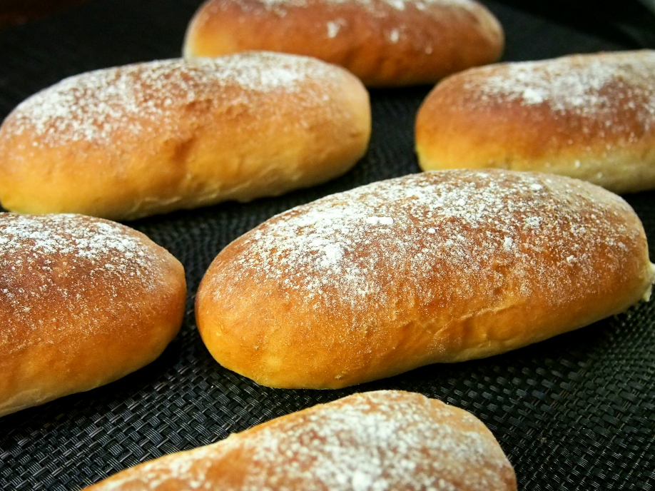 Pidän hot dogeista, ne ovat aina olleet minun suosikki pika ruokaa. Hyvän maukkaan makkaran lisäksi hot dogissa on tärkeätä sopivan pehmeä mutta kiinteä sämpylä. Olen kokeilut monia ohjeita ja monia valmissämpylöitä, mutta kun lopulta löysin leivontaani splettijauhot, niin löytyi myös ne parhaat hot dog sämpylät. Karkeat spelttijauhot ja pieni määrä vehnäjauhoja tekevät koostumuksesta juuri sellaisen josta pidän, ja lisäksi sämpylöistä tulee kauniin väriset.