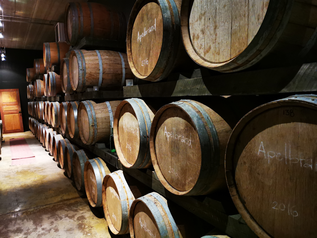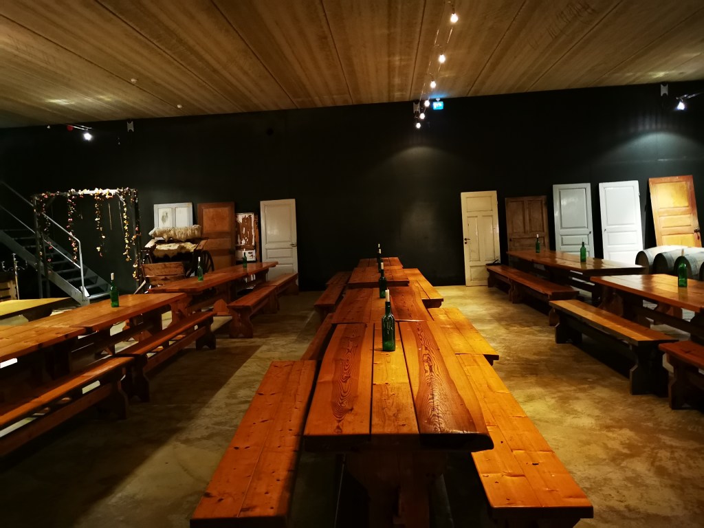 Pannukakun jälkeen vierailimme vielä viinikellarissa jossa oli kypsymässä Åpelbrandia. Viinikellari toimii myös tapahtumatilana.