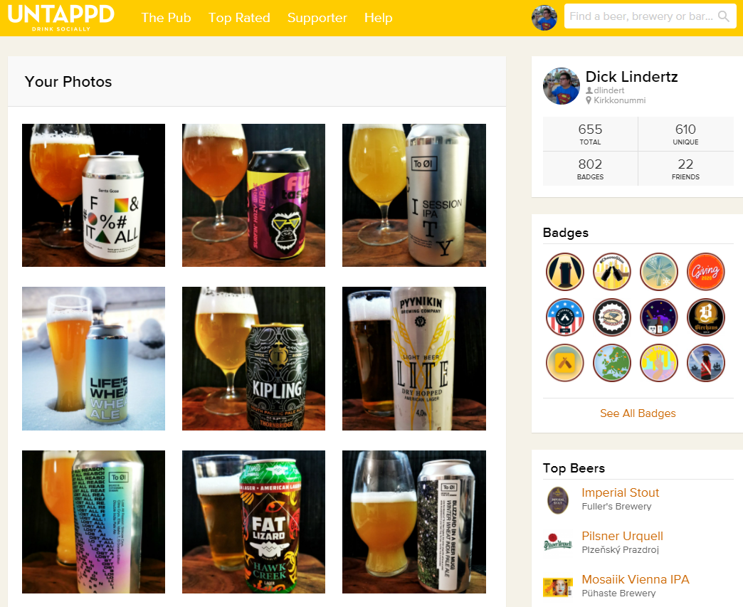 Hyvin suuri osa olueista joita nykyjään juon ja maistelen ovat käsityöläisoluita, ja niitähän löytyy vaikka joka päivälle uusi. Olen Untappd mobiilisovelluksella tähän mennessä pisteyttänyt yli 610 eri olutta ja olen vasta raapaisut pintaa (aloin pisteyttämään oluita suht säännöllisesti vasta 2018).