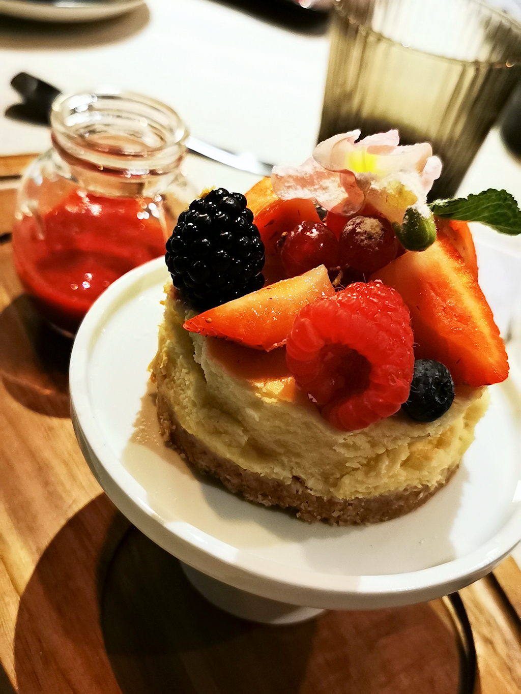 New yorkin juustokakku: Mansikkakastiketta.