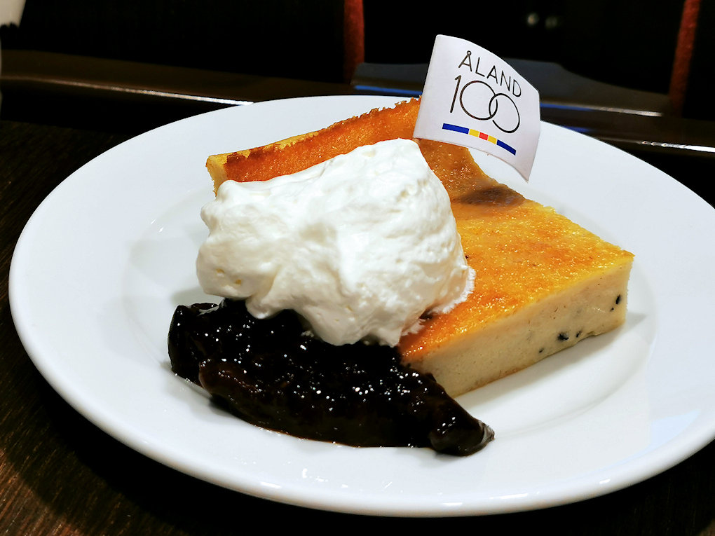 Ahvenanmaa 100 projektin tiedotustilaisuudessa meille tarjottiin voittajareseptin mukaan tehtyä Ahvenanmaan pannukakkua: