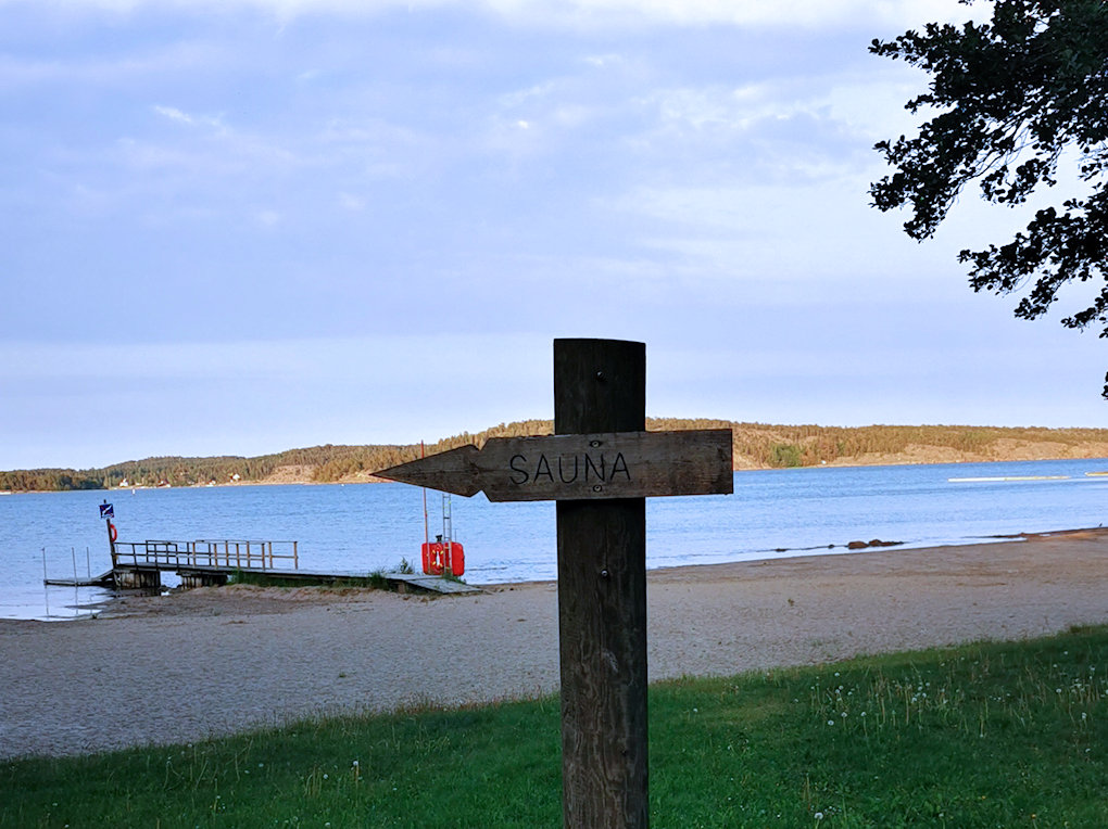 Ennen laivaan siirtymistä saimme vielä mahdollisuuden saunoa upeassa Gröna Udden saunassa joka sijaitsee upealla Gröna Udden leirintä- ja mökkialueella.