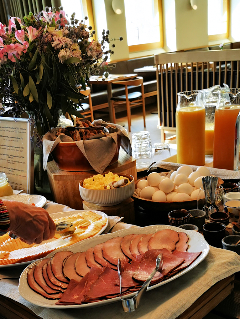 Runo Hotelin aamiainen oli paras mitä olen Suomessa tähän mennessä kokenut, ja nimenomaan laadun takia, jopa karjalanpiirakat oli käsin tehty! Aamiaiseen kuului aamiaisbuffetin lisäksi lämmin kananmuna annos.